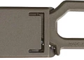 La funda tiene en la parte trasera un clip que permite poner la herramienta en diferentes posiciones en chalecos de combate, y en equipos de buceo, mochilas, trabillas, etc. Con el agujero en la parte delantera, también se puede usar con un cordón como un cuchillo para el cuello.