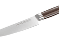 Este pequeño cuchillo de chef, totalmente forjado, resulta sólido, duradero y perfectamente equilibrado. Así que ocupará un lugar privilegiado en las cocinas durante muchos años. El acero X50CrMoV15 es un acero inoxidable que presenta una alta resistencia a la corrosión y ofrece una alta calidad de corte. Dureza de la hoja 56-57 HRC. La hoja de seda sólida se prolonga en todo el mango y contribuye a la solidez y al equilibrio del cuchillo, ya que el peso del acero está repartido. El mango de haya procede de un bosque eco-gestionado y no está barnizado. Está estabilizado para ser resistente al agua. Su perfil ergonómico es un homenaje a la navaja tradicional, ofrece un agarre extraordinario.