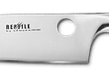 El lomo redondeado reduce el roce y la fatiga de los dedos durante las operaciones de cocción prolongadas. Soldado a la hoja, el mango acanalado hueco presenta un agarre antideslizante y una forma ergonómica que mantiene su mano cómoda durante las tareas rutinarias y pesadas de la cocina.