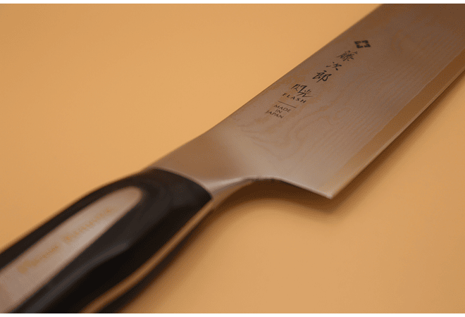 Precioso cuchillo Tojiro, de acero Damascus, mango de Micarta y acero forjado. Este cuchillo representa completamente la cultura Japonesa por la buena cocina y cortes perfectos. No solo por su extremo afilado sino tambien por todo el proceso por cual se manufactura, enlazando la técnica tradicional junto con el innovador desarrollo de la técnica DP. ( Método de Prevención de Decarburización), acero Damascus con 63 capas de aceros VG10 y aceros alto/bajo en carbono inoxidables que le dan un aspecto unico de cada pieza.