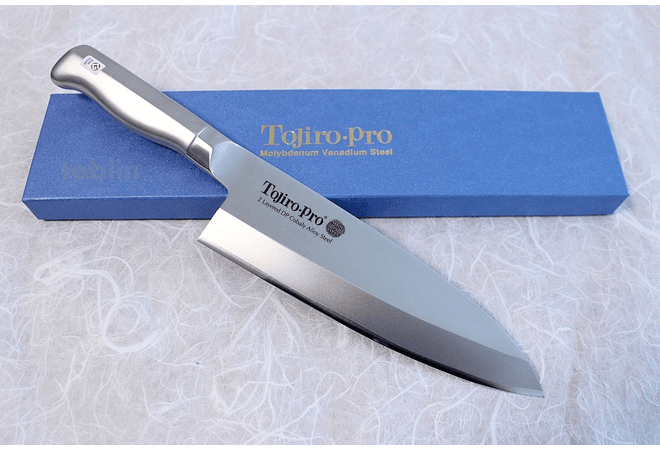Tojiro Pro es un cuchillo de cocina DP de acero y aleación de cobalto de 2 capas de material compuesto con suma profesionalidad con una hoja de 165mm.